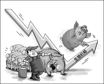 湖南省湘潭縣排頭鄉延化村養豬大戶雍自強告訴《經濟參考報》記者,3、4月生豬價格降到每斤5元多時,每頭生豬至少要虧損300多元,F在豬價回升,開始有了一些“賺頭”。