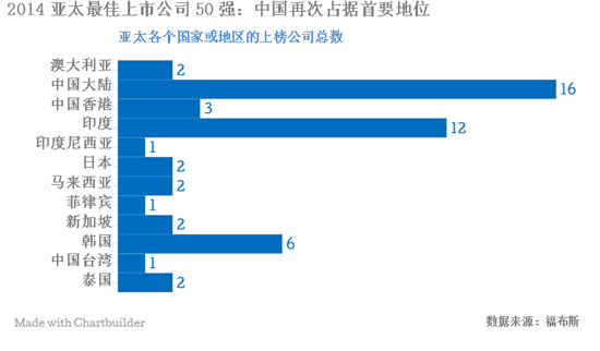 福布斯中文網29日公布了一年一度的福布斯亞太最佳上市公司50強榜單。和過去三年一樣,中國擁有最多的上榜公司。但由于中國目前正在經歷經濟增速放緩,因此上榜公司總數從前年的23家以及去年的20家下降至今年的16家。中國的房地產市場不景氣導致原本屬于上榜?偷姆康禺a開發商今年均跌出榜單!