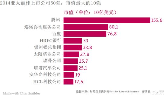 亞太最佳上市公司50強榜單選自于亞太地區1,300家市值或年營收至少達到30億美元的企業。由于我們只考慮上市公司,諸如阿里巴巴集團和華為等熱門的非上市公司就不在本榜單的考慮范圍之內。我們考察了涵蓋范圍廣泛的一系列業績指標,分析每家公司的前景,然后剔除擔負太多債務或者至少半數股份為政府持有的公司。半數以上股份為上市母公司持有的公司也被剔除。經過上述種種計算,最終得出了這份榜單。