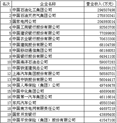 2日,中國企業聯合會發布2014中國企業500強報告顯示,兩桶油繼續領銜500強企業,分獲前兩名。中石化以營業收入超過2945億元獲得第一位,中石油以2759億元營業收入獲得第二位。