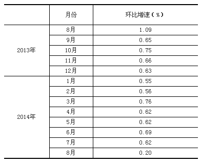 根據季節調整模型自動修正結果,對2013年8月至2014年7月份規模以上工業增加值環比增速進行修訂。修訂結果及2014年8月份環比數據如下:
