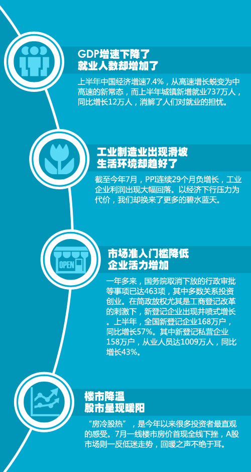 7.4%,這是上半年中國經濟交出的答卷。很多人擔憂,在經濟增長從高速蛻變為中高速的新常態下,就業人數會不會隨之下降?老百姓的收入會不會隨之下降?