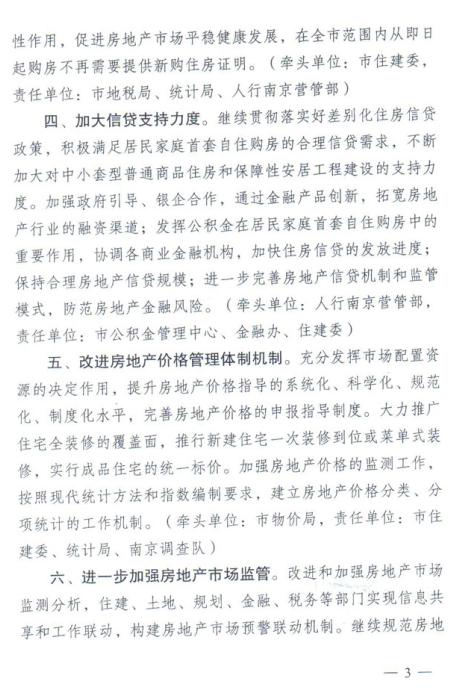 三是建立以保障住房剛性需求為重點的住房供應體系。按照“低端有保障、中端有支持、高端有市場”住房供應體系架構,分層分類原則,滿足不同層次需求,建立分類調控機制。從保障民生發展為立足點,加快危舊房棚戶區改造工作,著力改善住房困難家庭的住房條件,在保障中小戶型土地供應的基礎上,進一步加強中低價位、中小戶型普通住宅市場的供應,滿足群眾的各類剛性住房需求。為充分發揮市場在資源配置中的決定性作用,促進房地產市場平穩健康發展,在全市范圍內從即日起購房不再需要提供新購住房證明。