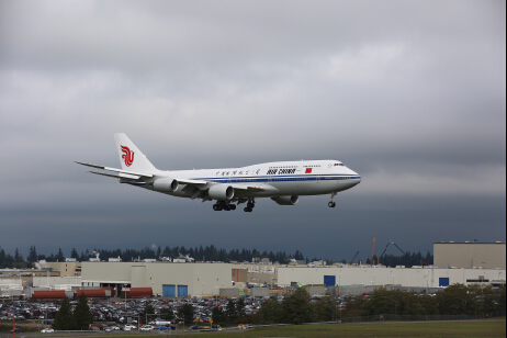 國航總裁宋志勇代表國航正式接受中國首架波音747-8