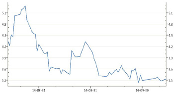 此次下調之后,正回購水平也再次創出3年半以來的新低。9月18日,14天期正回購中標利率曾下調20個基點,至3.5%。