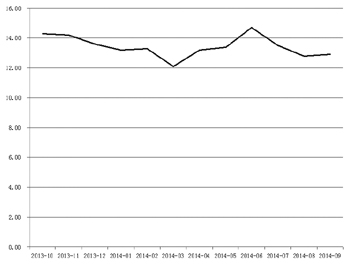 數據顯示,9月份社會融資規模為1.08萬億元,環比多增1268億元,同比少增3278億元,余額同比增速約14.5%,較上月末的14.9%下降0.4個百分點。而據中國人民銀行調查統計司司長盛松成介紹,2014年前三季度社會融資規模為12.84萬億元,為歷史同期次高水平,比去年同期少1.12萬億元,比應對國際金融危機期間的2009和2010年同期平均水平多1.56萬億元!坝纱丝梢,今年前三季度金融體系對實體經濟的資金支持力度是比較大的!彼f。