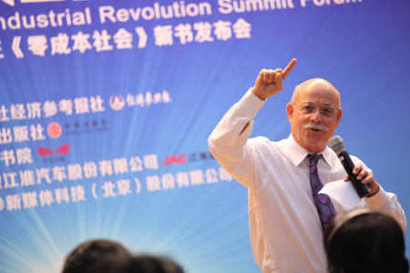 美國著名趨勢學家杰里米·里夫金16日在本報和中信出版社聯合主辦的“2014第三次工業革命高峰論壇”上表示,中國應加快向“零邊際成本社會”推進,這會使中國一直到2050年持續保持繁榮。本次論壇獲安徽江淮汽車股份有限公司支持。