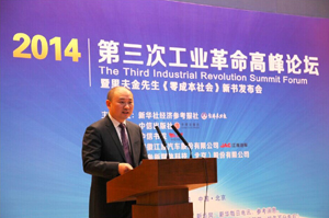 新華社副社長于紹良在致辭時指出,2012年,美國著名趨勢學家里夫金先生出版了《第三次工業革命》一書,在全球引起了熱烈反響。新華社旗下的媒體對此進行了充分的報道和宣傳!巴ㄟ^上述活動,極大地豐富了我們對第三次工業革命的認識,堅定了我們對第三次工業革命所描述的未來是一個非化石能源所支撐的世界的信心!彼硎,“里夫金先生新撰寫出版的《零成本社會》一書,進一步闡述了第三次工業革命對人類生產生活的深刻影響,對我們很有啟發!