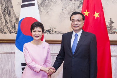 樸槿惠請李克強轉達對習近平主席的親切問候。她表示,李克強總理剛才在亞歐首腦會議上發表了很好的講話,將有力促進亞歐合作。中國為幫助西非國家抗擊埃博拉疫情作出了重要貢獻。中國經濟持續快速發展有利于地區和世界的繁榮。韓方愿同中方進一步擴大經貿、金融等領域合作,期待于今年年底前完成韓中自貿協定談判,力爭達成全面和高水平的自貿協定,努力實現2015年兩國貿易額3000億美元目標,提高兩國的國際競爭力,促進經濟可持續增長。