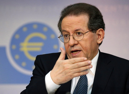 歐洲央行26日公布了歐元區銀行業全面審查與壓力測試結果,共有25家銀行未通過壓力測試,資金缺口為250億歐元。這一結果和市場預期接近,歐洲央行也對測試結果表示滿意。圖為10月26日,歐洲央行副行長維克多·康斯坦西奧在德國法蘭克福出席新聞發布會。