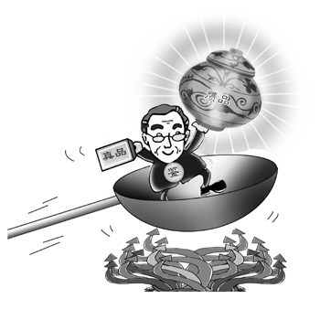 價格泡沫背后的市場“失衡”,反映出藝術品交易市場的法律失范之痛。江因風說:“藝術品市場看上去似乎很多部門都在管,但是又都沒人管,這里面牽涉文物、工商、發改、海關、公安等多個部門,究竟該由誰牽頭負責,沒有說法,我國也沒有明確法律條文對藝術品市場的制假行為做出約束!