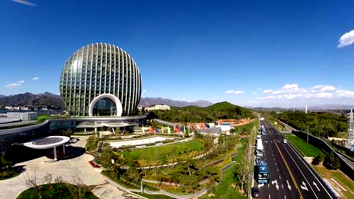 這是航拍的位于懷柔雁棲湖畔的日出東方凱賓斯基酒店(10月15日攝)。