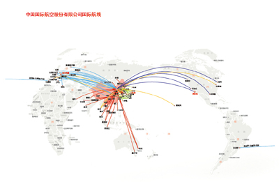 為加快實現“競爭實力世界前列,發展能力持續增強,客戶體驗完美獨特,相關利益穩步提升”的戰略目標,近年來國航致力于國際樞紐網絡的建設,逐步構建了北京國際樞紐、成都區域樞紐、上海門戶航線網絡。其中北京國際始發航線46條,國內始發84條;上海國際始發航線13條,國內始發20條;成都國際始發航線9條,國內始發55條。在加強中轉聯程樞紐建設,進一步均衡全球航線網絡的同時,國航也持續加大對各地區航線的運力增投,使二者相互促進,協同發展。