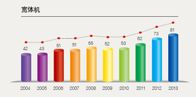隨著第20架波音777-300ER和首架全新波音747-8先后入列國航機隊,國航將形成以波音747-8、777-300ER和空客330系列為主的梯次型寬體機隊。預計到2015年,國航(含國貨航、深圳航空、澳門航空、北京航空、大連航空、內蒙古航空)機隊規模將達到581架左右。其中,窄體客機464架左右,占比79.9%;寬體客機93架左右,占比16%;貨機15架左右,占比2.6%;公務機9架左右,占比1.5%,成為擁有中國民航最大寬體機隊、365天24小時全球運行的世界級航空公司。
