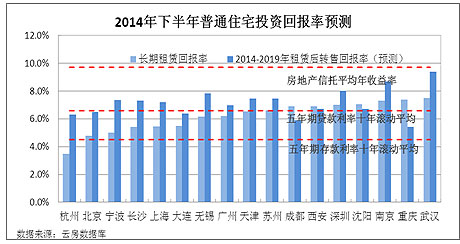 因此,單從各個回報率數據來看,普通住宅投資首選城市為沈陽、成都的長線投資,大連、長沙、武漢、無錫的短線投資。