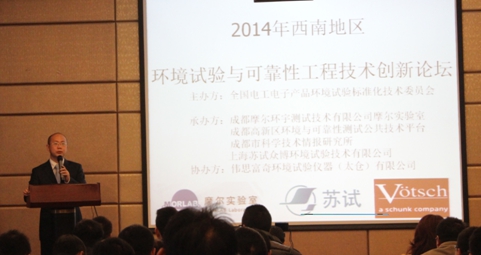 為讓西南地區廣大的電子產品生產和研發企業進一步掌握現行標準的試驗方法,了解環境與可靠性技術發展的最新趨勢及未來標準發展方向,由全國電工電子產品環境試驗標準化技術委員會主辦,成都摩爾實驗室、成都高新區環境與可靠性測試公共技術平臺、成都市科學技術情報研究所承辦,上海蘇試眾博環境試驗技術有限公司、偉思富奇環境試驗儀器(太倉)有限公司協辦的2014年西南地區“環境試驗與可靠性工程技術創新論壇暨GJB150A培訓會”于2014年12月4日至5日在成都康普雷斯大酒店成功舉辦。