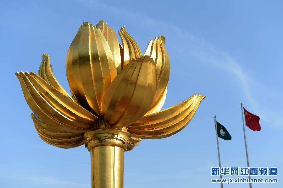 這是澳門金蓮花廣場上的《盛世蓮花》雕塑(新華社記者 秦晴 12月16日攝)。