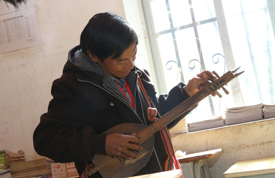 “我是想告訴孩子們讓他們要學會堅強,現在他們大多都是心里高興時彈一彈,但將來他們就知道了,以后的生活中會有很多的痛苦和不容易,那時她們彈起四弦琴會有一些不同的感受”,和盛偉坐在椅子上,粗糙的手里夾著剛點燃的香煙,看著在屋里嬉笑的孩子們若有所思地說。