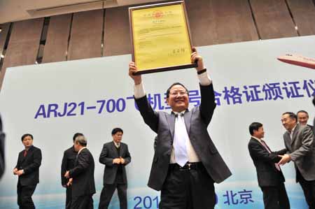 12月30日,中國民用航空局在北京向中國商用飛機有限責任公司頒發ARJ21-700飛機型號合格證。這標志著我國首款噴氣支線客機通過了型號合格審定,飛機設計滿足保證安全的基本要求,獲得了參與民用航空運輸活動的“入場券”。據介紹,ARJ21-700已經擁有200多架訂單。通過ARJ21-700飛機研制,我國掌握了一大批新技術、新材料、新工藝,積累了重大創新工程的項目管理經驗,為C919大型客機項目順利推進創造了有利條件。