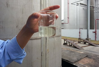中器環保的工作人員向記者展示已加工好的生物柴油,顏色清澈,沒有特別的氣味。 周琳/攝 |