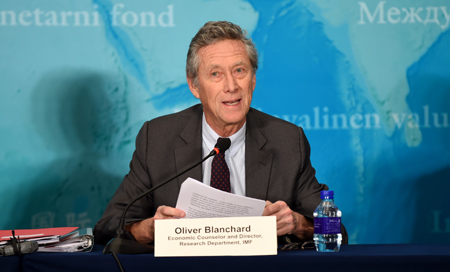 1月20日,國際貨幣基金組織(IMF)首次在北京召開《世界經濟展望報告》新聞發布會。據IMF最新預測,2015年和2016年的全球增長率預計為3.5%和3.7%,相比2014年10月期《世界經濟展望報告》的預測分別下調了0.3個百分點。 圖為當日國際貨幣基金組織首席經濟學家奧利維耶·布朗夏爾介紹《世界經濟展望報告》最新預測。
