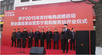 1月23日,蘇寧易購首家自營服務站在江蘇省宿遷市洋河鎮正式開業,當日,鹽城市龍岡鎮的服務站也開門迎客,兩家自營服務站的開業標志著蘇寧農村電商發展進入自營跟加盟兩種模式共同發展階段,縣鎮網絡建設布局也全面加速。