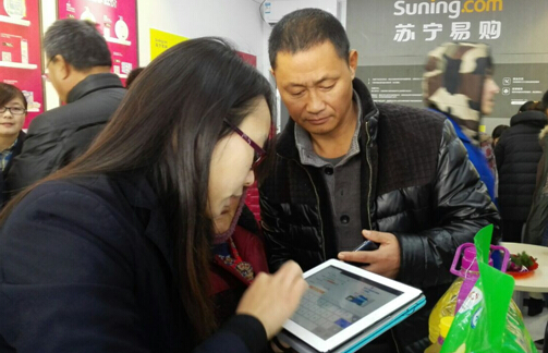 今年52歲的老李告訴筆者,以前買個熱水器都要跑到幾十里外的宿遷城區,好不容易找人運回家后又不會安裝,跑來跑去都要折騰好幾天。幾經尋問,老李打開了話匣子:“我們這一輩人沒學過拼音,短信都不會發就更別提什么這端那端的了,F在很多大廠家這些智能的東西咱都不會用,我在深圳打工的時候看到人家城里人在手機端點幾下就有那個叫火箭哥的把貨送到家門口。我那時就想什么時候我家媳婦也能享受享受呢。沒想到這個愿望這么快就實現了!痹谔K寧員工的幫助下,老李通過蘇寧易購客戶端一下子買上萬塊錢的商品。用老李的話:“我活了大半輩子了第一次發現原來買家電這么方便!
