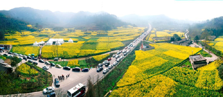 每到春天,大片大片的油菜花在被譽為“中國最美的鄉村公路”的重慶路沿路盛開,宛如一場鄉村盛宴。當春風吹過,花隨地勢流動,有如花海。每年3月初,“中國成都自駕賞花節”便在這里等你如約而至,賞花節將持續到4月中旬。這一個月中,正是春花盛放時節。