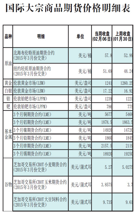 國際大宗商品期貨價格明細表[2015-2-2]
