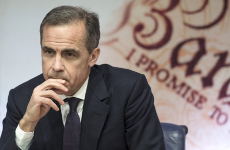 英國央行12日發表最新經濟和通脹情況季度預測。英國央行預計在低油價的支持下今年英國經濟將實現2.9%的強勁增長,但未來數月通脹率可能降至負值。英國央行不認為今年需要啟動加息,并且如果通脹水平要低于預期,該行可能還將會進一步降息。 圖為2月12日,在英國倫敦,英國央行行長馬克·卡尼發表講話。