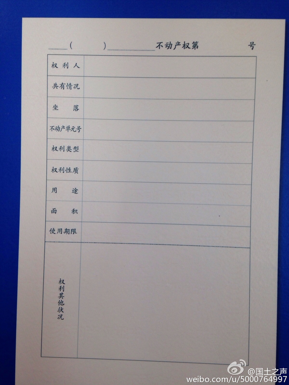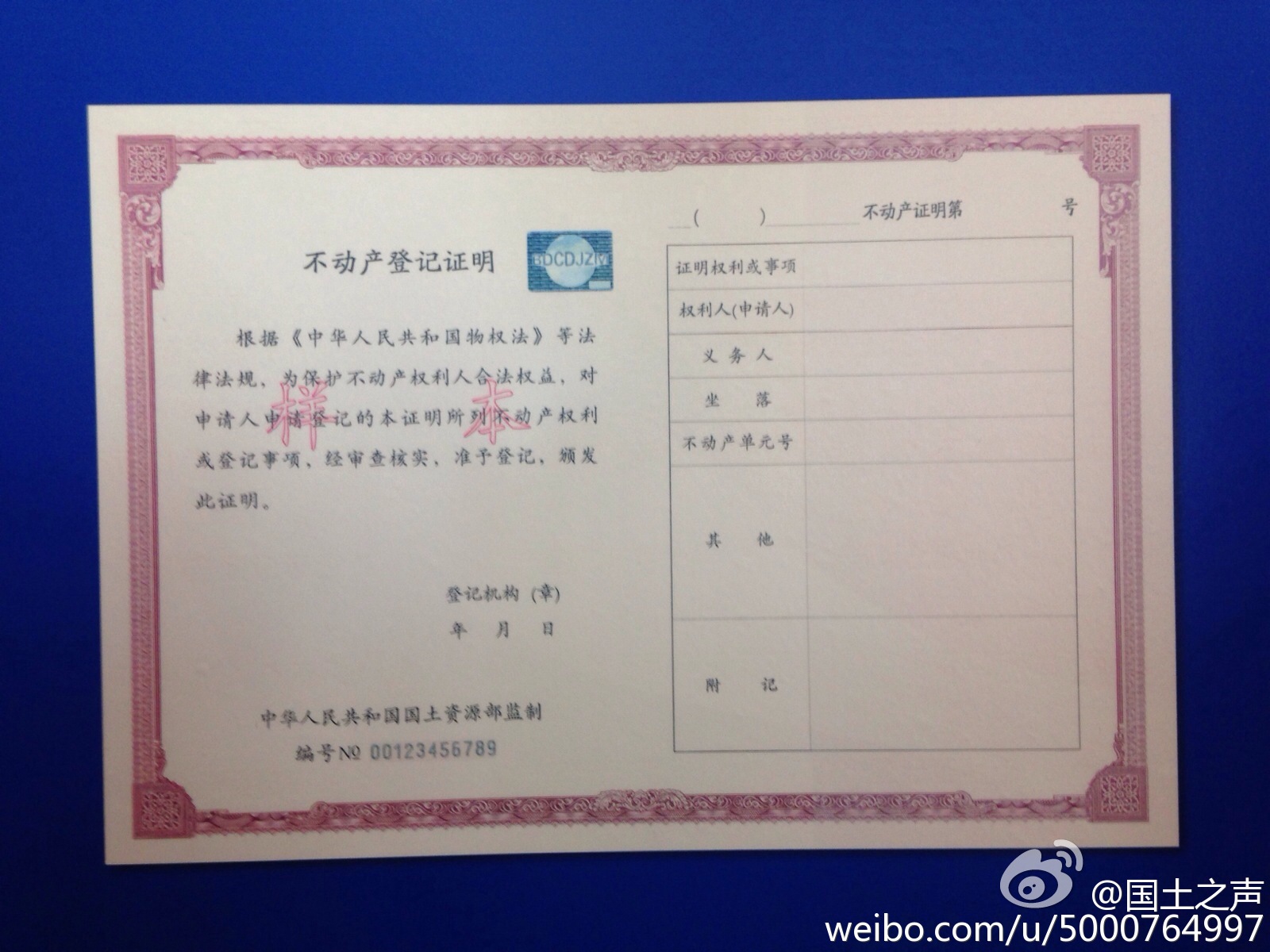 摘要:國土資源部公布了《不動產權證書》、《不動產登記證明》的樣本。