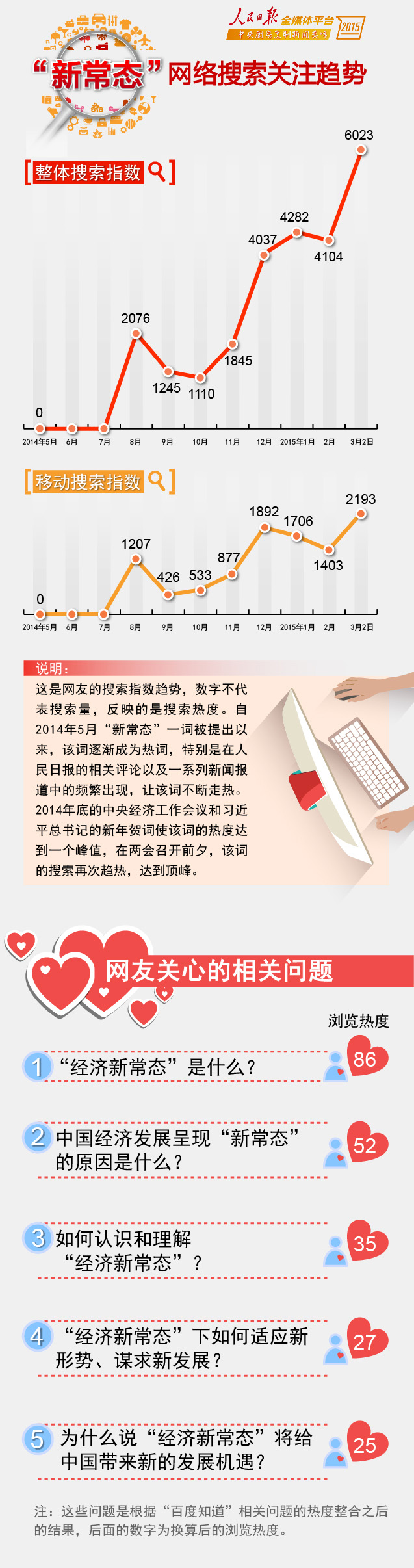百度搜索指數顯示,對新常態的關注,發軔于2014年5月,習近平總書記在河南考察時強調,我國發展仍處于重要戰略機遇期,我們要增強信心,從當前我國經濟發展的階段性特征出發,適應新常態,保持戰略上的平常心態。