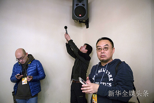 除了自拍神器,舉錄音“神器”也得用這個pose! 新華社記者 才揚 攝