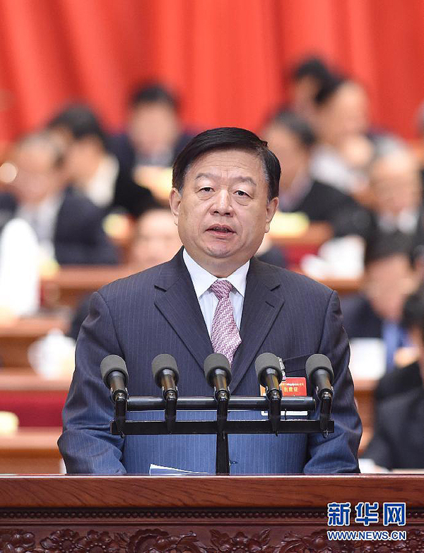 3月10日,全國政協十二屆三次會議在北京人民大會堂舉行第三次全體會議。這是魏傳忠代表8位委員作《構建藝術品鑒證質量溯源體系促進藝術品市場健康有序發展》的聯合發言。新華社記者 王曄 攝
