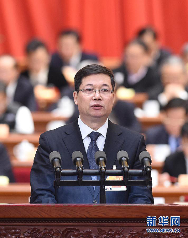3月10日,全國政協十二屆三次會議在北京人民大會堂舉行第三次全體會議。這是李世明委員代表全國總工會作《關注生命安全筑牢安全紅線》的發言。新華社記者 王曄 攝