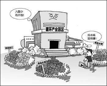 此外,不少入園企業反映,由于國內回收體系尚不健全,受法律法規對廢舊機電、廢五金、廢塑料等的限制,一些進口原料不足,企業嚴重“吃不飽”。天津子牙園區內的TCL企業設計年處理廢家電240萬臺,2010年只處理了約100萬臺。由于廢家電是國家法律禁止進口的類別,目前他們只能依靠國內回收的少量廢家電為加工原料。天津一家木塑制品企業,12條生產線平時也只能開幾條,生產能力白白浪費。