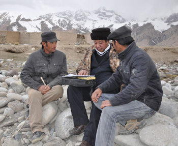 | 新疆塔縣支行信貸人員為農牧民講解農戶貸款 |