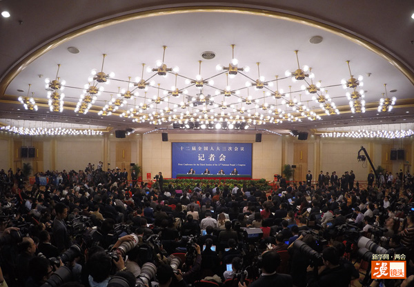 看看這記者會陣勢,就知道兩會是有多受關注啦!新華社記者 邢廣 利攝