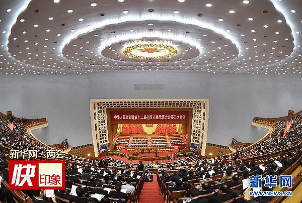 3月12日,十二屆全國人大三次會議在北京人民大會堂舉行第三次全體會議。新華社記者 李然 攝
