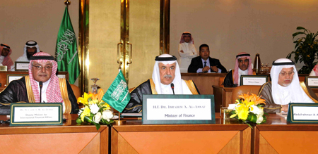 3月16日,在沙特首都利雅得,沙特財政大臣阿薩夫(中)在中國和沙特阿拉伯第五屆經貿聯委會上發言。 為期兩天的中國和沙特阿拉伯第五屆經貿聯委會15日在沙特召開。沙特財政大臣阿薩夫說,沙特希望參與中國政府提出的建立亞洲基礎設施投資銀行(亞投行)的倡議。