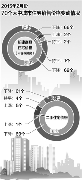 國家統計局城市司高級統計師劉建偉分析認為,春節假期因素促使房價環比降幅略有擴大。發布的數據顯示,2月70個城市新建商品住宅價格環比綜合平均降幅比1月擴大0.1個百分點。