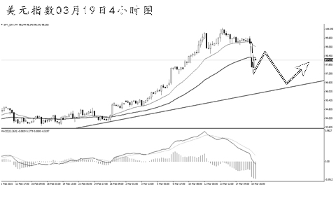 美元指數受到美聯儲利率決議的影響,短線發生暴跌行情。從日線圖上看,均線系統仍然保持依托狀態,由于道氏低點支撐93.20距離現價過遠,美元指數想要結束中線的跌勢仍有很大的困難。從4小時圖上看,此波下跌力度迅猛,下方趨勢線支撐在96.15,美元指數有望逐步向此位置發起調整。短線有一定的上調需求,但在重新暴發出強勁的多頭動能之前,不宜激進看漲。