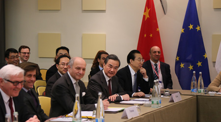 當地時間3月29日,在瑞士洛桑,中國外交部長王毅(中)出席伊核問題外長會。 伊核問題六國(美、英、法、俄、中、德)與伊朗就核問題的新一輪外長會29日晚在瑞士洛桑舉行。這也是去年11月伊核談判決定延期以來舉行的首場伊核問題外長會。國際原油市場密切關注本輪談判,如果得以在約定的截止日期達成框架協議,伊核問題將形成突破,國際油價將承受下行壓力。不過,目前一些突出分歧對談判進程構成障礙,雖有達成協議的機遇,但風險也很高。
