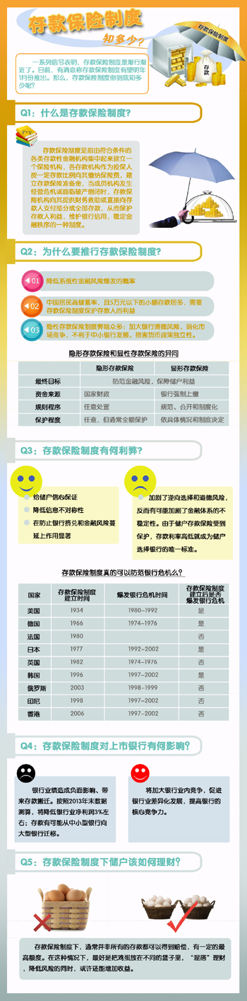 中國民生銀行首席研究員溫彬說,存款保險條例實施后,預計我國最終放開存款利率上限、實現利率市場化已為時不遠,《條例》標志著我國金改進入新階段,和前期的一系列改革措施配套將有助于提高金融體系效率、增強金融在資源配置中的作用。