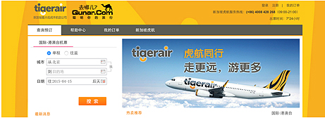 4月16日,虎航宣布與全球最大中文在線旅游平臺去哪兒網展開戰略合作,建立虎航-去哪兒網旗艦店,讓中國消費者以實惠的價格和更便捷的方式飛往更多海外目的地。目前,虎航是第一家與去哪兒網推出網上旗艦店的國際廉價航空公司。