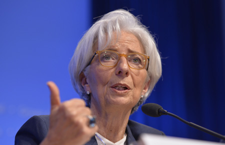 國際貨幣基金組織(IMF)決策機構——國際貨幣與金融委員會18日舉行第31界部長級會議,并發布公告稱,全球經濟復蘇“溫和”但“不均”,敦促各國采取措施促進全球經濟更加強勁、可持續和平衡增長。(詳見今日四版) 圖為國際貨幣基金組織總裁拉加德當日在美國首都華盛頓的新聞發布會上講話。