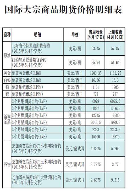 國際大宗商品期貨價格明細表[2015-4-20]