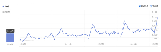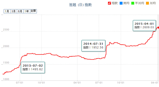 連翹屬于落葉灌木。枝開展或下垂,棕色、棕褐色或淡黃褐色,小枝土黃色或灰褐色,略呈四棱形,疏生皮孔,節間中空,節部具實心髓;ㄆ3-4月,果期7-9月。2015年第一季度連翹價格指數上漲23.6%,從歷史價格指數走勢來看,每年連翹價格上漲期間基本是在7、8月份,此期間主要是由于連翹的果期在7-9月份,受需求拉動價格上漲。但是今年直接在一季度價格就開始出現爬升,此次上漲不同往年的7、8月份,上漲幅度比較緩慢,但周期較長,導致總體漲幅還要高于往期水平。近兩年的連翹價格指數走勢如圖6所示。