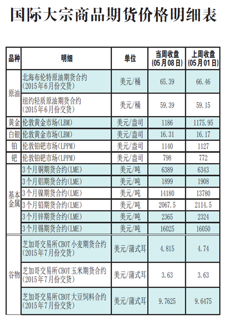 國際大宗商品期貨價格明細表[2015-5-11]