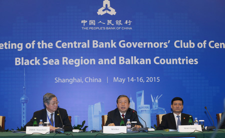 5月14日,中亞、黑海及巴爾干地區央行行長組織第33屆央行行長會議在上海開幕,國務院副總理馬凱(中)出席會議并致辭。 中黑巴組織成立于1998年,每年召開兩次央行行長會議。我國首次主辦中黑巴組織央行行長會議,來自24個國家的代表參加會議。